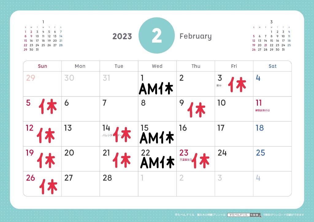 2月の営業のご案内です。