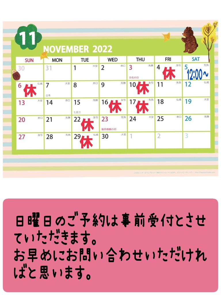 11月のお休みについて