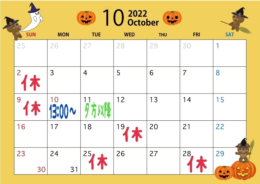 10月のお休みになります。